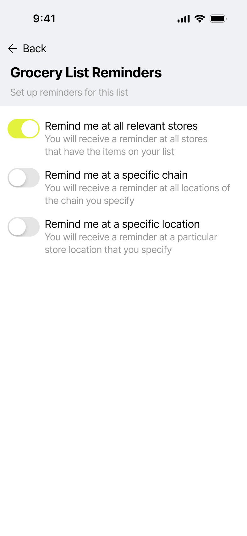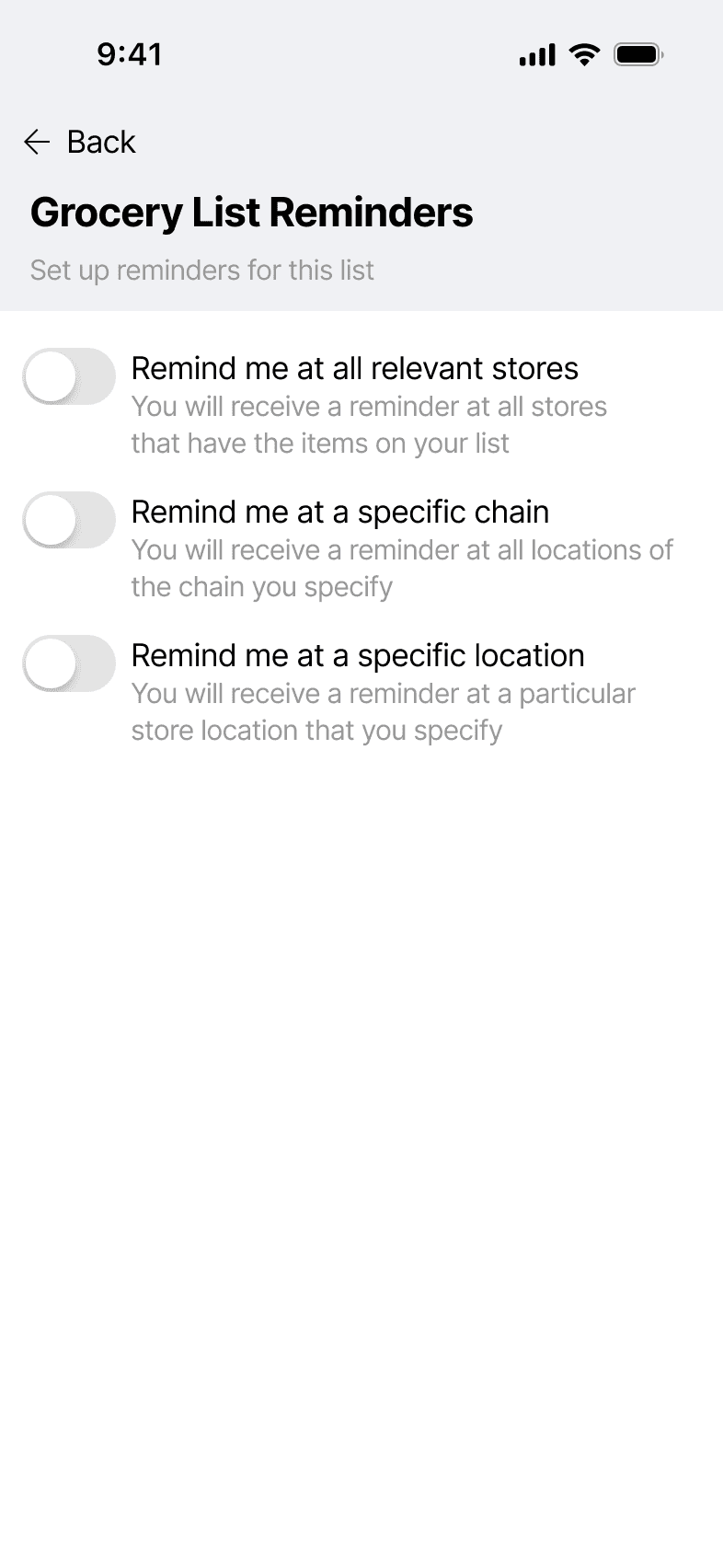 Magic Lists was a shopping list app I designed at InMarket but was ultimately never released.