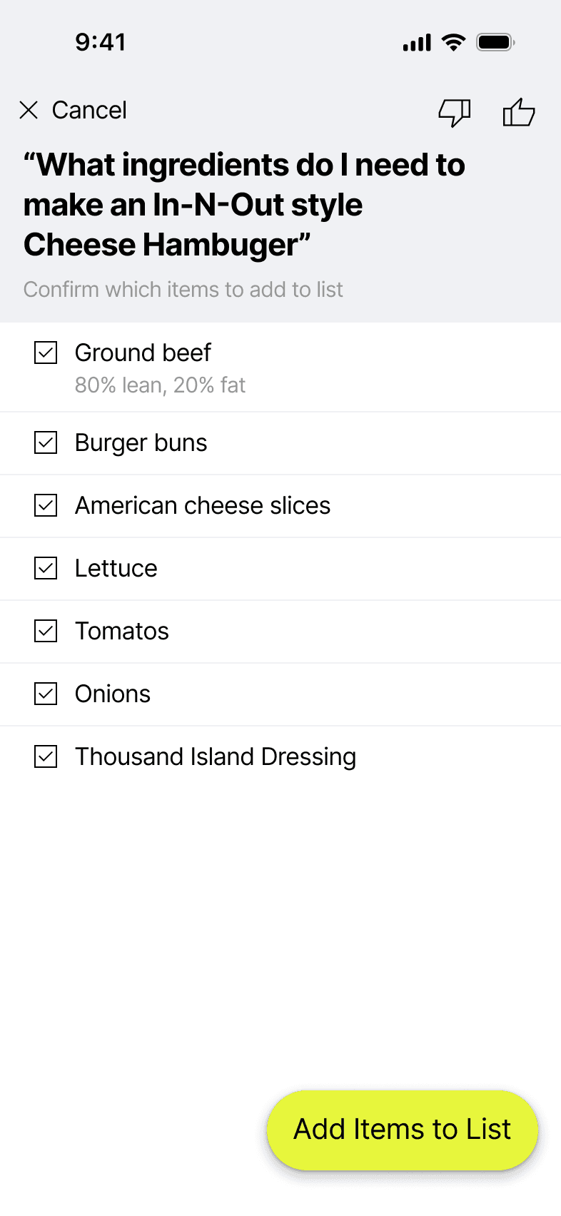 The idea was to create an AI-powered shopping list app that lets users enter the name of any dish and instantly generate all the ingredients needed to make it by leveraging AI, with a simple option to add them directly to your shopping list.